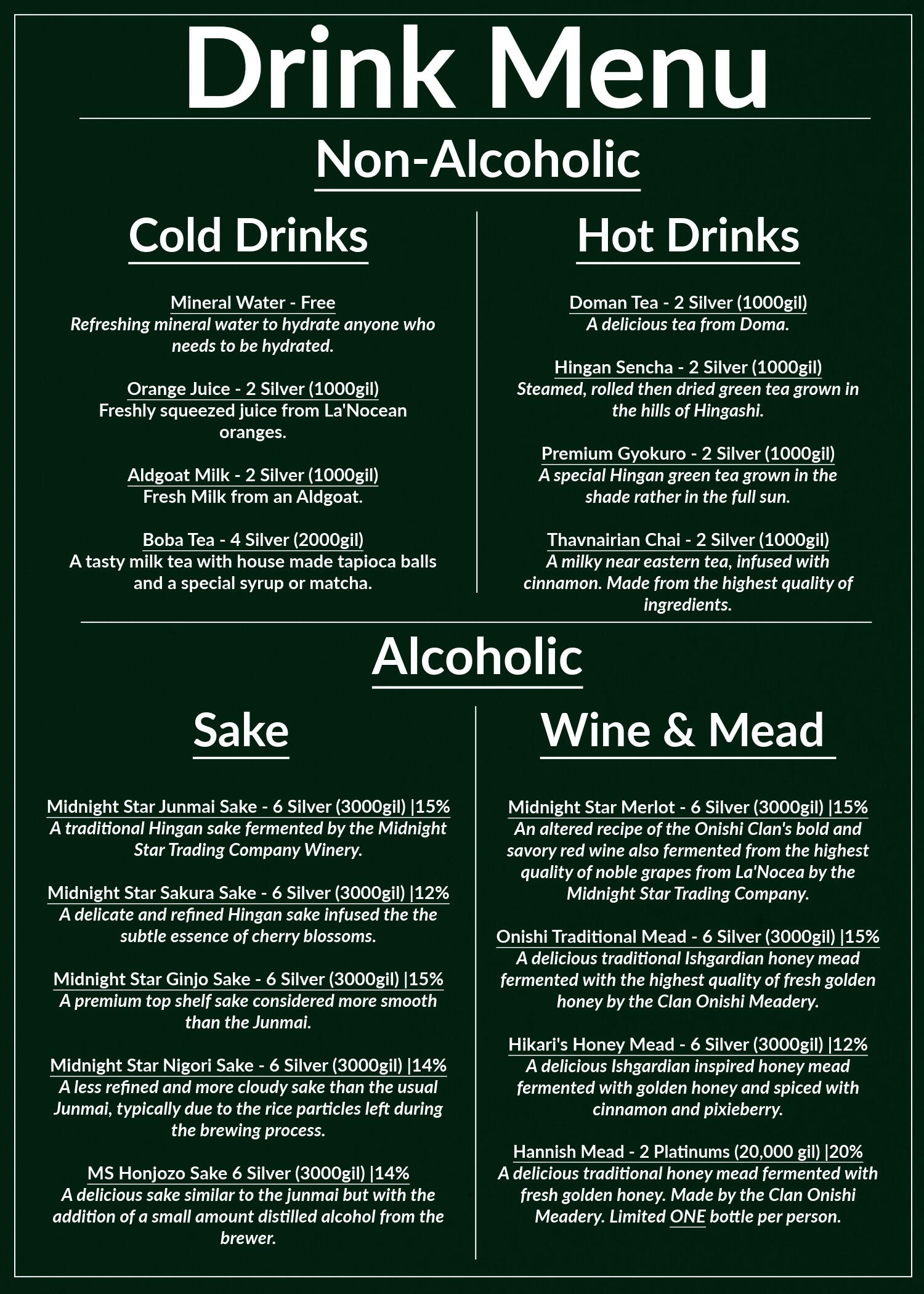 - No real gil or real life money is exchanged for menu items. It is all roleplay gil. Tips are optional and appreciated. However, in game menu items are exchanged for immersive purposes.