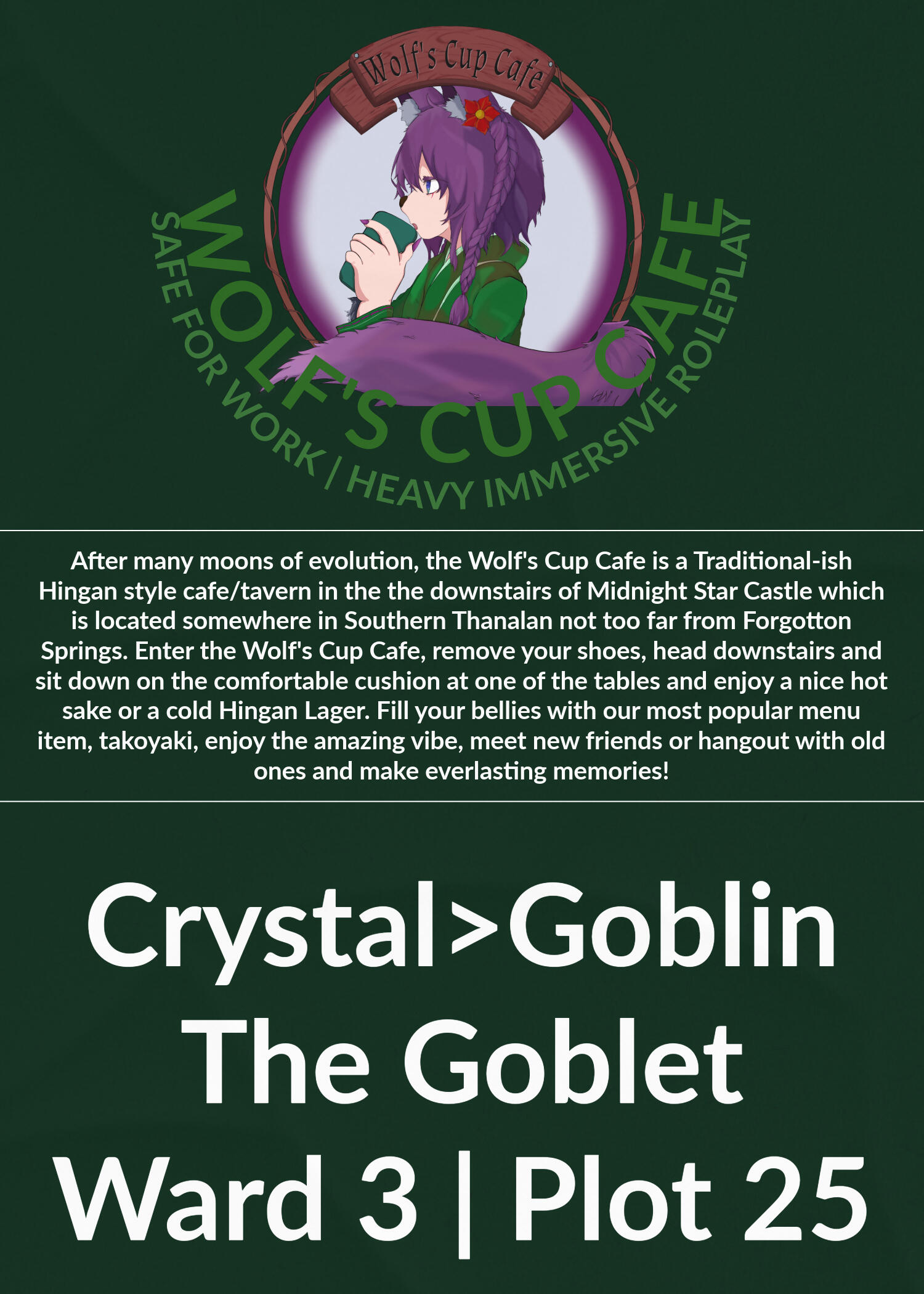 The Wolf's Cup Cafe is looking for bartenders, servers/geisha, and greeter/security positions! We pay 300k per shift plus you can keep whatever tips you receive!Fill out the form below if you're interested in working at The Wolf's Cup Cafe!